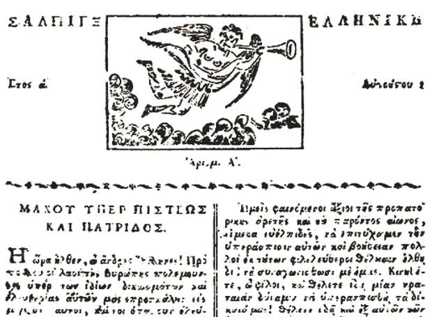 Ως πρώτη επίσημη Ελληνική εφημερίδα χαρακτηρίζεται η "Σάλπιγξ Ελληνική" του Ιωάννη Τόμπρου
