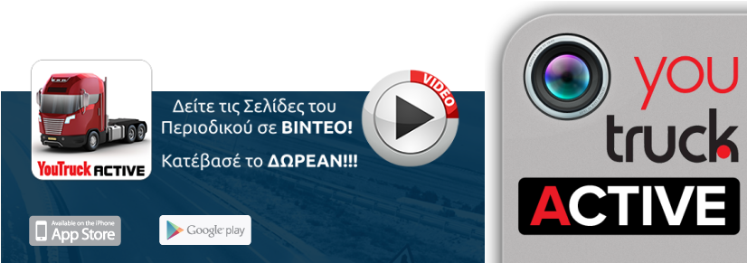 Mάζι με το Νέο Τεύχος You Truck Magazine Κατεβάστε το Youtruck Active δωρεάν σε Android ή iOS και ωφεληθείτε από τις υπηρεσίες που μπορεί να σας προσφέρει.